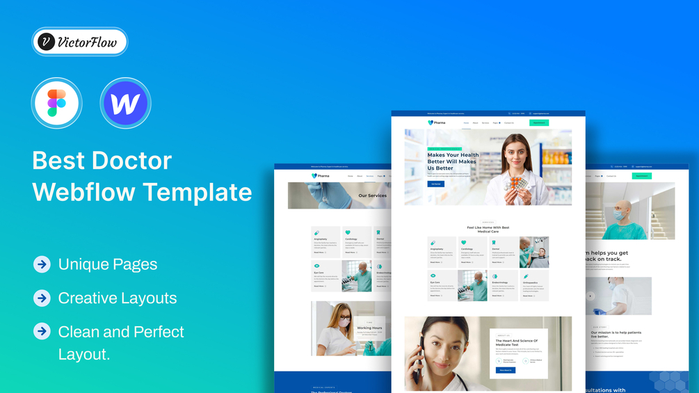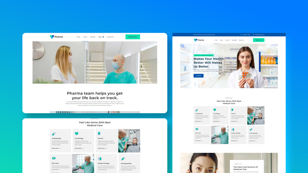 The Pharma is a breathtaking medical and healthcare Figma Template. It is highly suitable for websites of pharmacy, medical, health, doctor, clinic, hospital, medicine, dentist, dental, wellness, healthcare, and veterinary.
