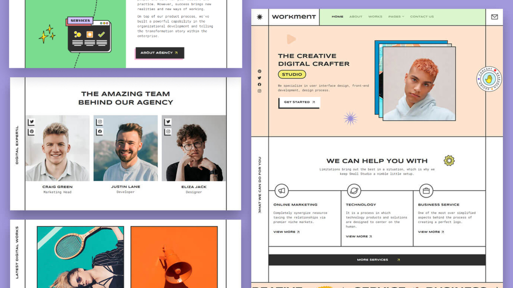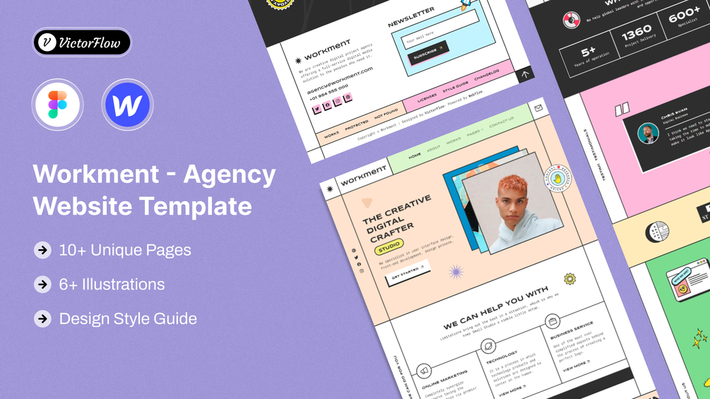 Workment is a creative, minimal, and trendy designed portfolio agency Figma template. Elegant and informative layouts help you to create an impressive portfolio website easier than you think.